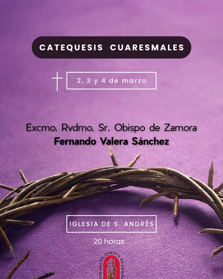 Descarga Catequesis Cuaresmales 2026Del 2 al 4 de marzo tendrán lugar en la iglesia de San Andrés las Catequesis Cuaresmales 2026, que estarán dirigidas por el Sr. Obispo de Zamora, el Ilmo. y Rvdmo. Sr. Fernando Valera Sánchez.