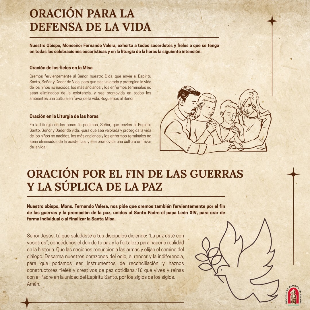 Descarga Oración por la defensa de la vida y por el fin de las guerras y la súplica de la paz.Nuestro Obispo, Monseñor Fernando Valera, exhorta a todos sacerdotes y fieles a que se tenga en todas las celebraciones eucarísticas y en la liturgia de la horas la siguiente intención.