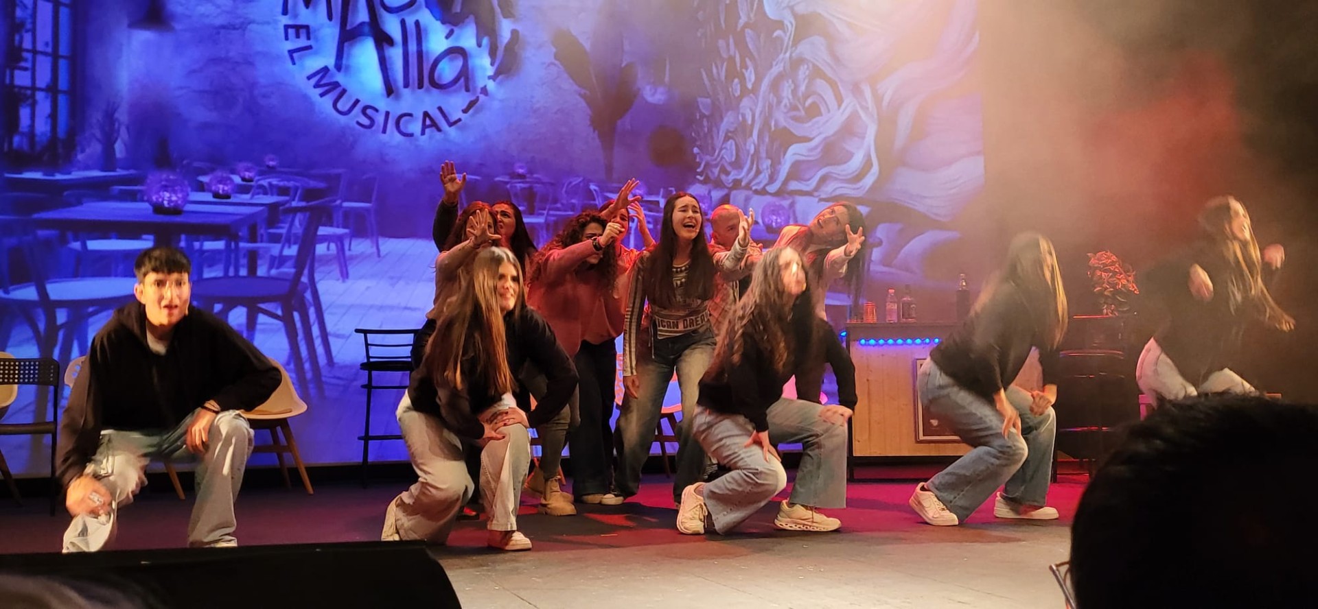 Estructurada en cinco actos y diez escenas, la historia sitúa al público en una cafetería llamada Más Allá, lugar simbólico de encuentro en el que varios jóvenes artistas comparten inquietudes, búsquedas y experiencias. A partir de ese marco, la trama aborda cuestiones muy presentes en la sociedad contemporánea, como la incertidumbre, el escepticismo, el mal, la tristeza o la necesidad de encontrar un horizonte de verdad, amistad y sentido.